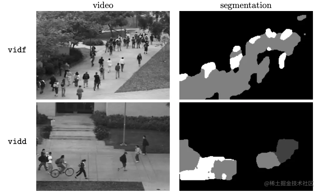 视频目录包含两个场景的视频(分为 vidf 和 vidd 两个目录)。每个场景都在自己的 vidX 目录中,并被分割成一组 .png 片段。