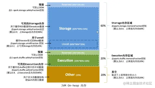 通过以上,你可能已经了解了 JVM 内存中最重要的堆内存相关的两个概念,以及 Spark 是如何进行这两种内存管理的。那 Spark 的一个具体的任务跟这两种内存有什么关系呢?