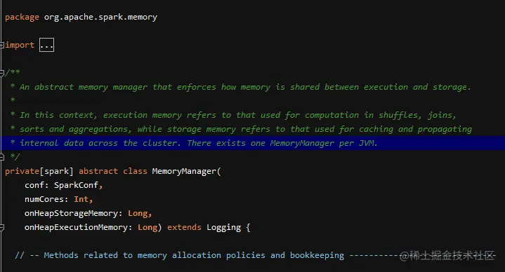 那么 Spark 是如何对这两种内存进行管理的呢?Spark 提供了两种内存管理的策略:一种是静态内存管理策略,另一种是统一内存管理策略。(可以通过 Spark 源码的 MemoryManager 来找到它的两种实现策略)