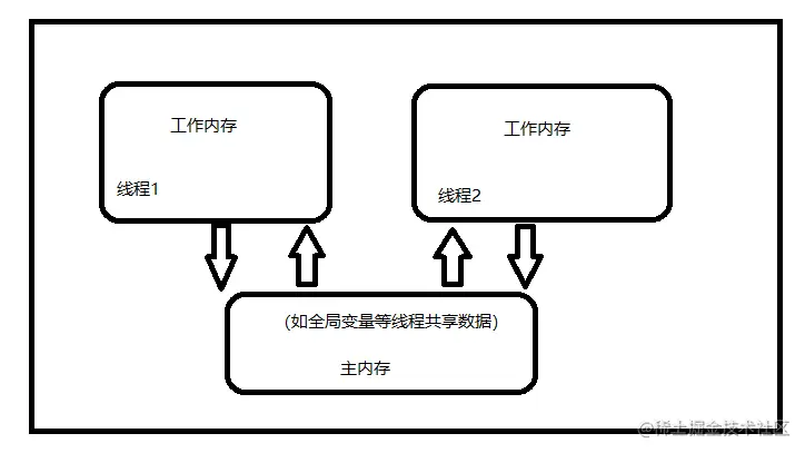 对于堆内内存,又分为工作内存和主内存,工作内存属于线程私有,主内存数据线程公有,例如可以存储一些全局变量等数据。所以当线程公有的时候,如果线程 1 和线程 2 同时进行某个共享变量的读写的时候,就会出现数据异常,因此内存模型会涉及到三个概念:可见性、原子性和指令重排序(非本文重点可自行学习)。