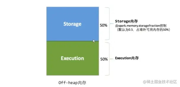 那么执行内存和存储内存又是什么呢?这就要看 Spark 的堆内内存和堆外内存的划分方案了。不管是堆内内存还是堆外内存,都至少包含两个重要的内存区域:存储内存和执行内存。因此,Spark 的两套内存管理策略就是针对这两种内存划分展开的。
