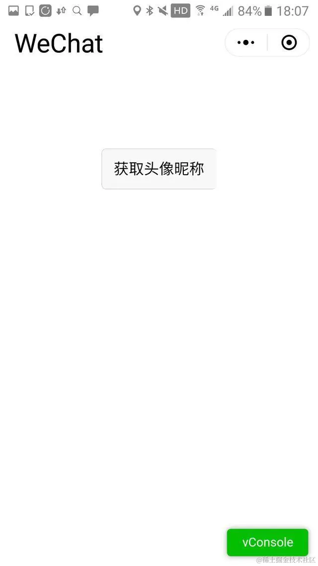 在微信小程序上显示一个按钮:“获取头像昵称”。