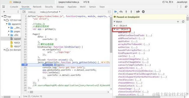 在小程序能够访问的上下文里,有一个全局变量wx,里面包含了所有微信框架暴露出来的API: