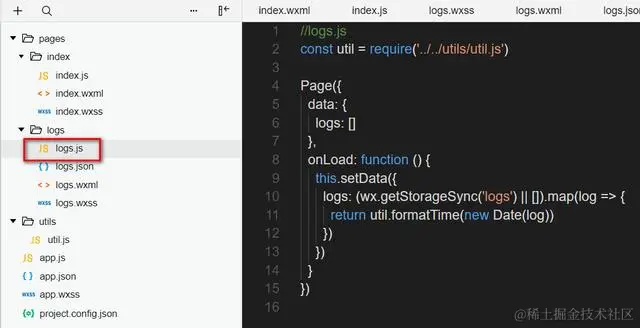 在控制器里调用Page构造函数,给当前控制器指定名为logs的数据模型。