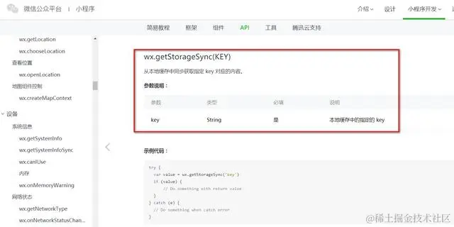 wx.getStorageSync的含义在微信小程序官网上有定义:从本地缓存中同步获取指定 key 对应的内容。