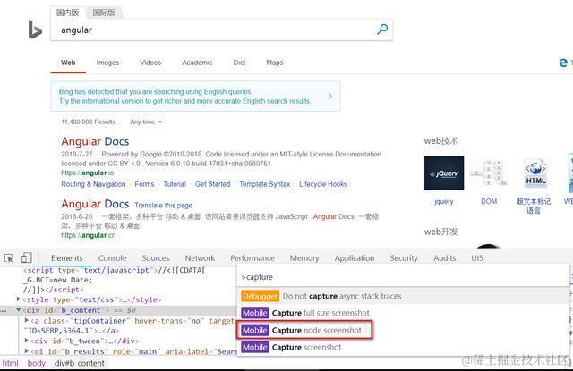 是不是非常方便?大家从Chrome开发者工具的命令行里还能发现很多其他有用的功能,比如只截取网页上指定元素。