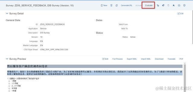 如果上述勾打上之后,可以通过点击CRM UI上的Evaluation按钮,以图表形式查看Survey结果: