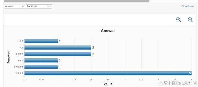 结果图表显示实际上是按照“每个问题实际上有多少种不同的答案”来进行的。从上图我的测试数据来看,每个问题都具有两种不同类型的答案。但是每种答案具体的出现次数,统计图并未考虑。