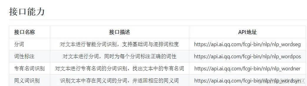 这是腾讯AI开放平台的自然语言处理的API说明:
