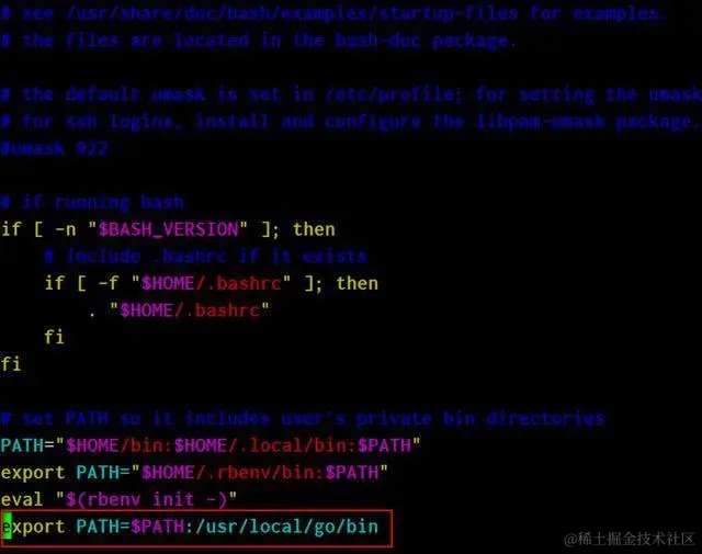 将go目录下的bin文件夹加到ubuntu的环境变量里: