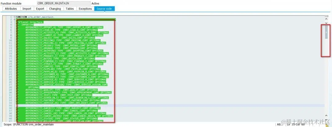 起初我采用的方式是在API里设置断点,然后在ABAP调试器里检查。很快我发现这样效率很低:CRM开发顾问都知道,像CRM_ORDER_MAINTAIN/READ这种API, 输入输出参数个数特别多,在ABAP 调试器里得选中一个双击进去看,看完了得点回退再双击看另一个。如果要把API所有的参数全部检查完,总共要点一百多次鼠标。