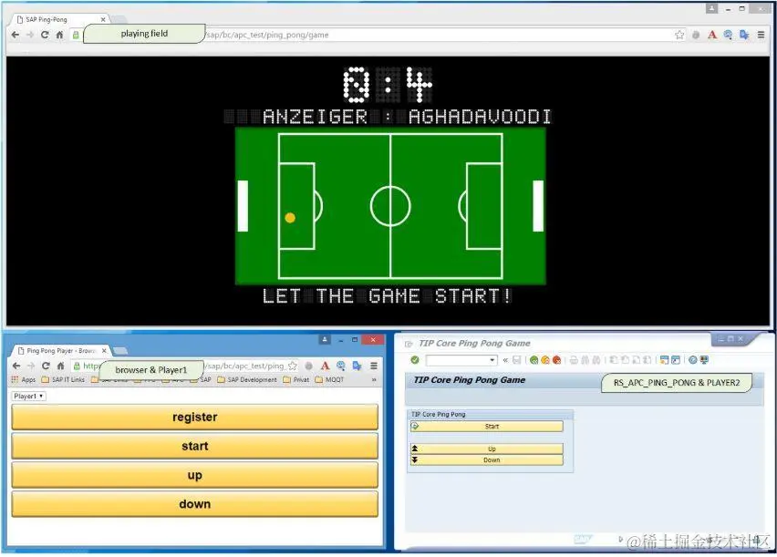 以及用今天要谈到的ABAP Channel技术开发的乒乓球游戏,还能支持双打,囧。