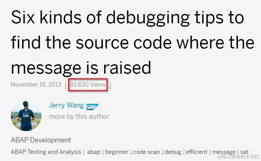 ABAP从业者做项目时经常需要使用各种跟踪和性能监控工具,最典型的有ST05和SAT。Jerry确实认为这些工具对ABAP开发者非常有用,Jerry在SAP社区上唯一的一篇阅读量超过十万的博客就是这篇讲ST05和SAT另类用途的文章: