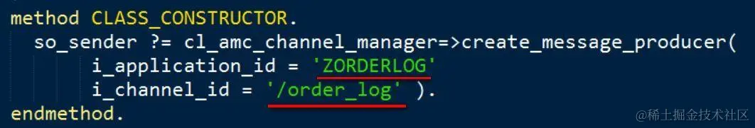 在静态构造函数里,将第二步创建的AMC ID和channel ID传入生产者的构造器里。确实,ABAP Channel的场景就是一个典型的生产者/消费者模式,ABAP后台生产的消息,通过Web Socket发送给浏览器由后者消费。