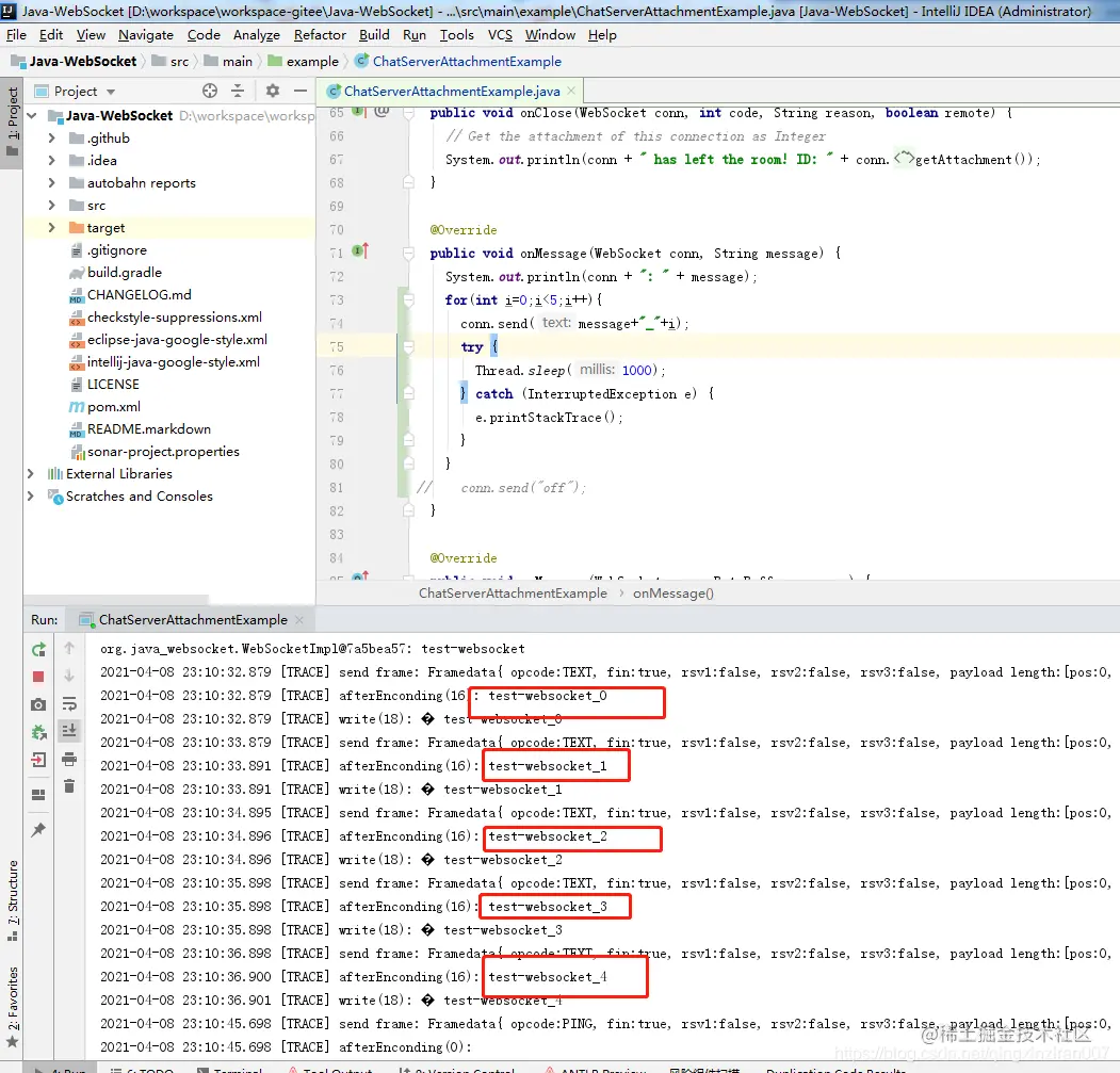 websocket服务端控制台输出: