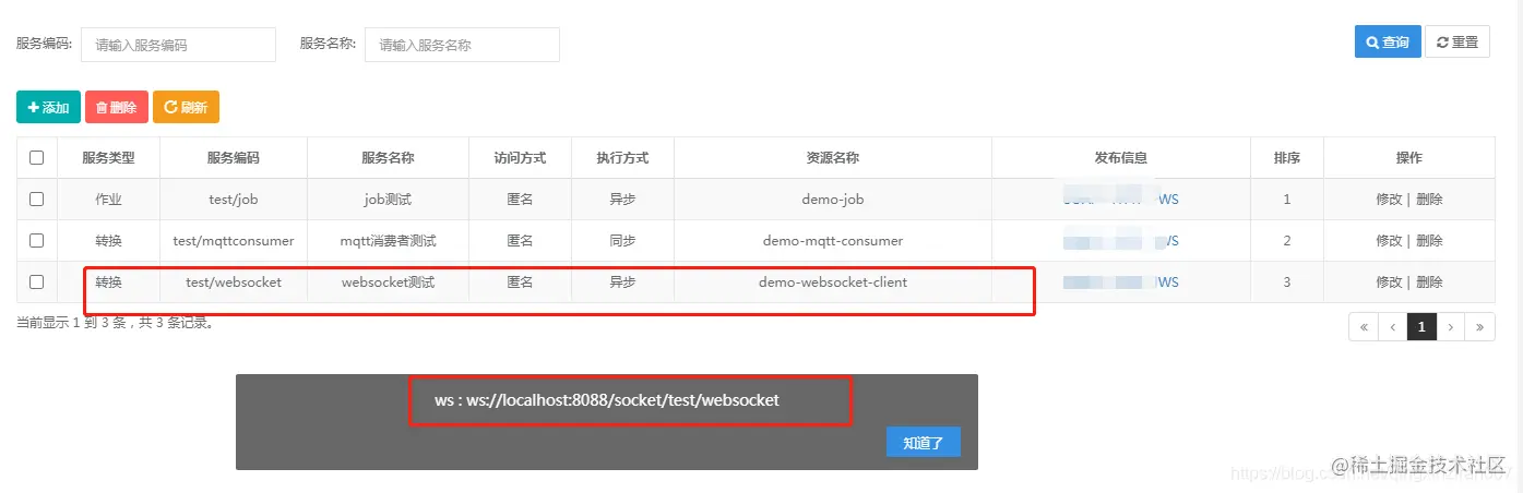 调用websocket接口,平台开始监听websocket服务端数据的变化,若有数据进入,则会通过websocket推送出来。