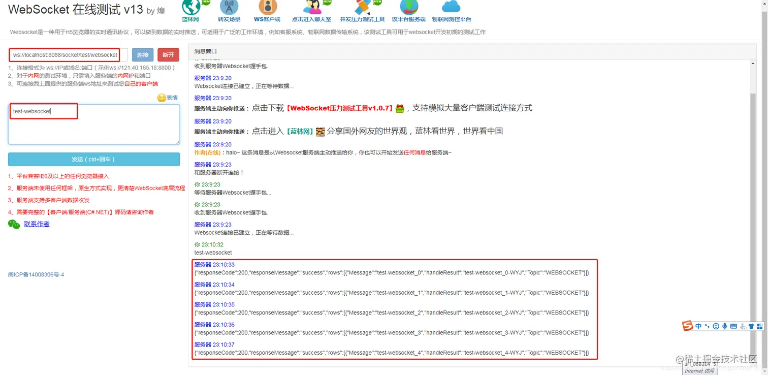 websocket客户端在线测试: