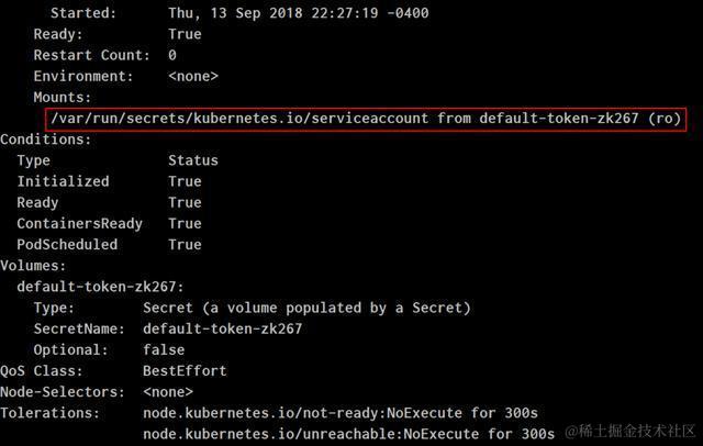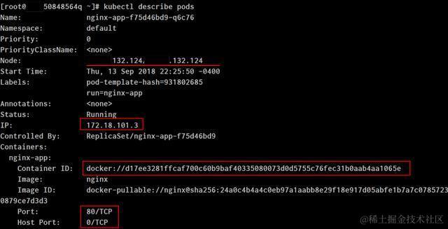 使用命令行kubectl describe pods查看pod明细: