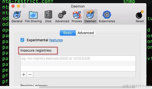 将错误信息里提到的gcr.io维护进Insecure registries, 点击按钮"Apply & Restart", 重新启动Docker Daemon: