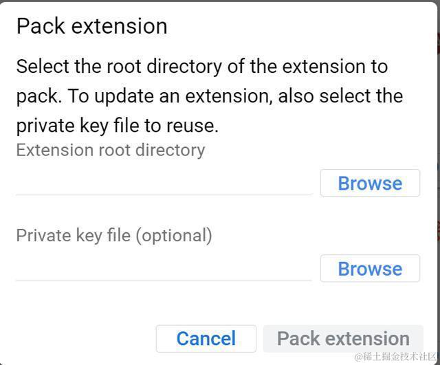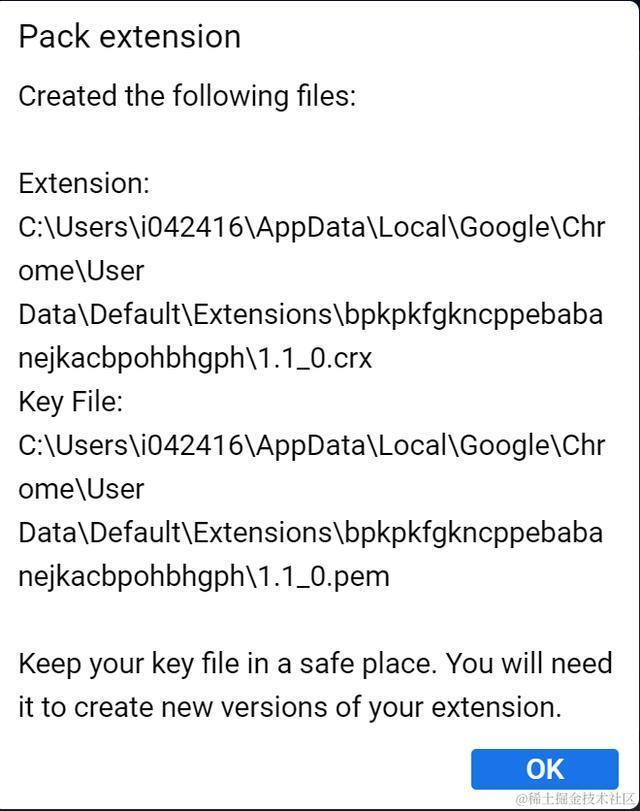 要备份这些文件夹,只需在Chrome里点击按钮“Pack extension”: