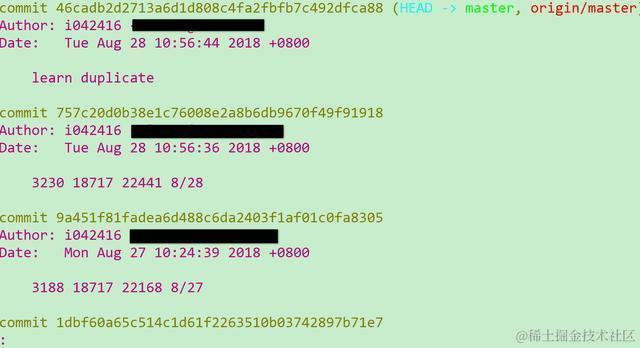 程序员每天都会使用到git的一系列命令。其中用git log命令可以查看提交历史记录: