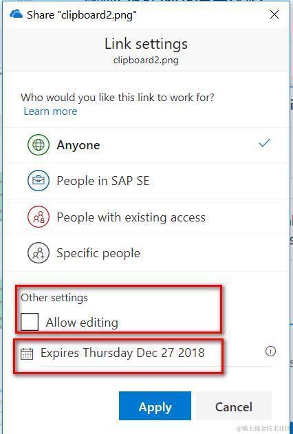 并且选择是只读分享还是允许别人编辑,以及分享的有效期限。