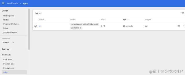 之后在Kubernetes的dashboard里能看到这个新建的job: