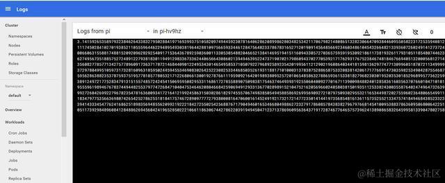 点击dashboard的logs按钮,就能看到这个2000位圆周率的计算结果: