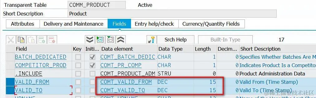 ABAP透明表里的时间戳,数据类型为dec: