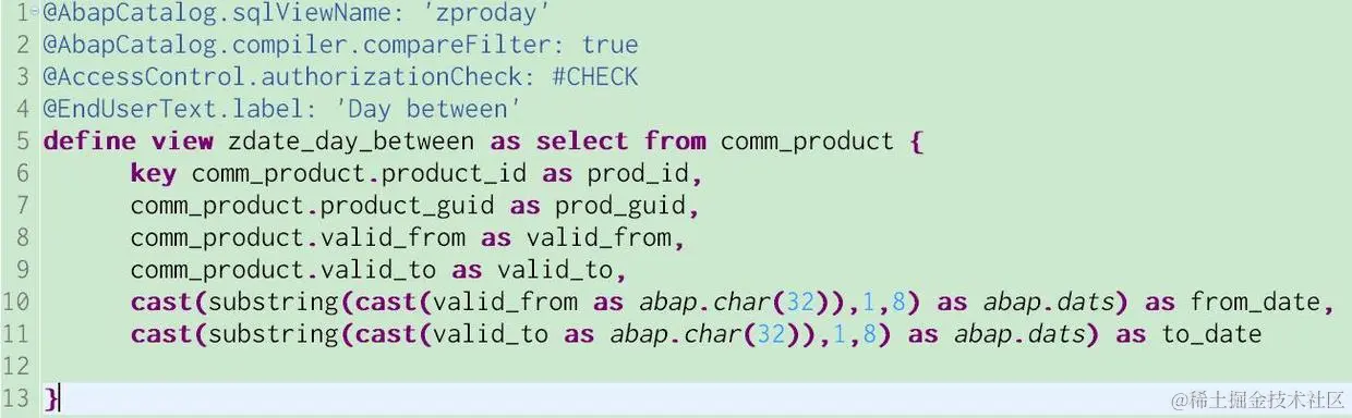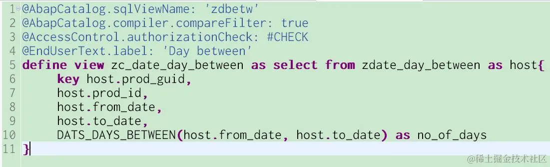 然后再用CDS view标准的时间处理函数DATS_DAYS_BETWEEN: