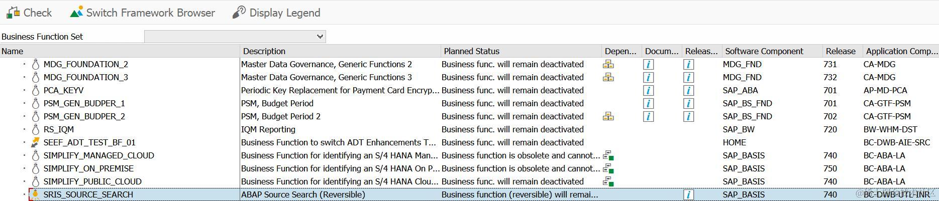 使用这个代码全文搜索的前提条件,是在事务码SFW5里激活业务功能:SRIS_SOURCE_SEARCH