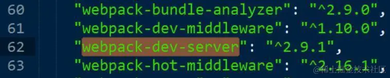 当然webpack-dev-server这个依赖也必须定义在package.json的dependencies区域里: