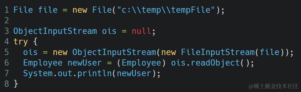 第12行的代码将Employee类的实例,jerry写入了文件tempFile中。