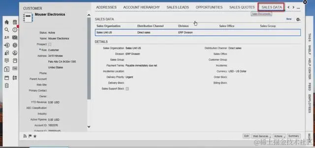 ERP的Sales Area数据出现在C4C TI page的Sales data标签页: