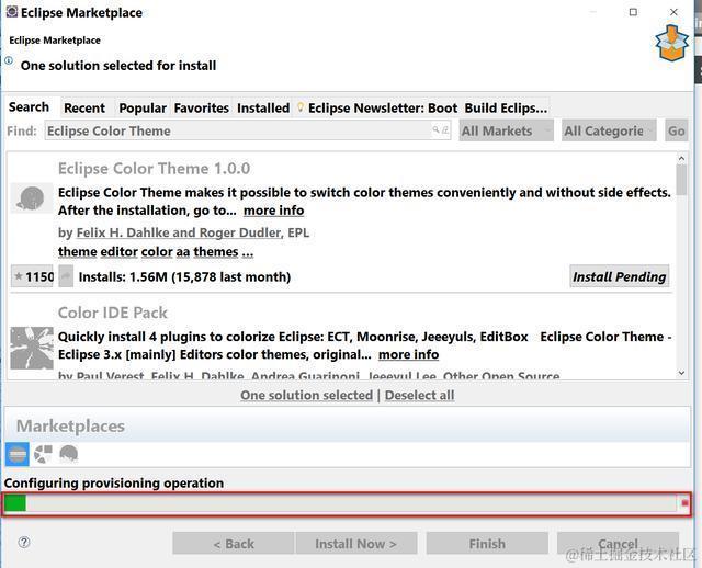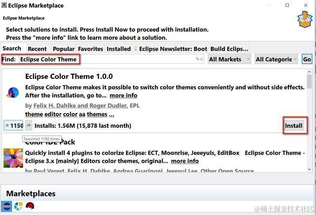在搜索框里输入Eclipse Color Theme,点Go,马上就得到搜索结果。点Install安装: