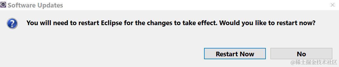 安装结束后,收到提示说需要重启Eclipse: