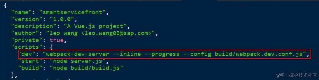 同样在package.json里定义dev script,执行该webpack-dev-server, 这样用命令行npm run dev就可启动webpack-dev-server.