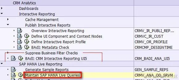 路径:CRM Analytics->SAP HANA Live Reporting: