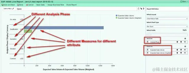 必填参数维护完毕后,给report指定需要显示在UI上的attribute。这里我选择了:“Analysis Phase”.
