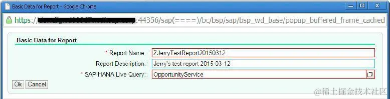 弹出窗口,维护report的名称,描述信息,和底层使用哪个SAP HANA Live Query: