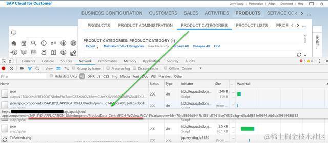 首先通过Chrome开发者工具找到Product Categories这个视图所在的工作中心视图: