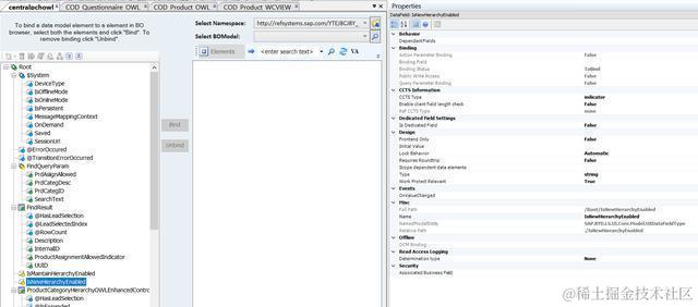 这个字段没有绑定到BO字段上(如下图,绿色字段代表绑定到BO上,黄色字段说明没有绑定值),说明它是在UI控制器的逻辑里被赋值的。