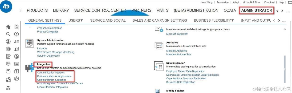 在C4C系统,工作中心Administrator, 视图General Settings, 在Integration里维护数据同步远端信息。