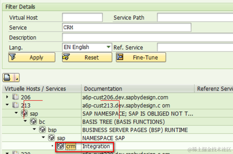 - 到CRM系统使用事务码SICF在路径/sap/bc/bsp/sap/crm下面创建一个新的ICF服务: