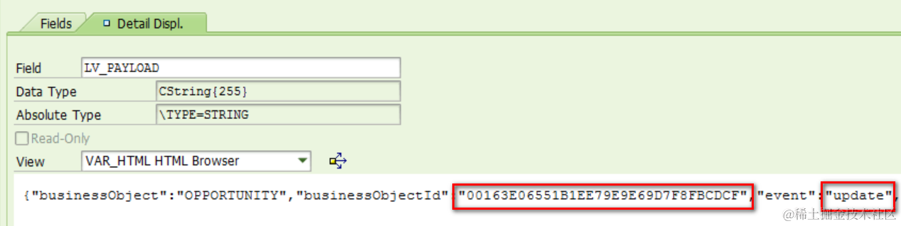 然后C4C系统里注册的CRM的endpoint指向的ICF服务的handler处理类的HANDLE_REQUEST会自动被调用:C4C发生修改的Opportunity的ID和修改类型(新建还是更新)也会自动从C4C传入CRM。