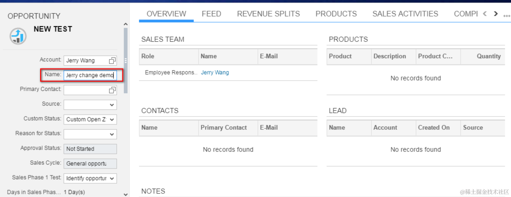 现在回到C4C系统,随便修改一个Opportunity,比如修改name字段,将值改为 “Jerry change demo”: