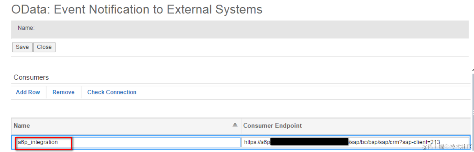 为此,我需要创建一个新的consumer,维护一个endpoint:https:///sap/bc/bsp/sap/crm?sap-client=213,