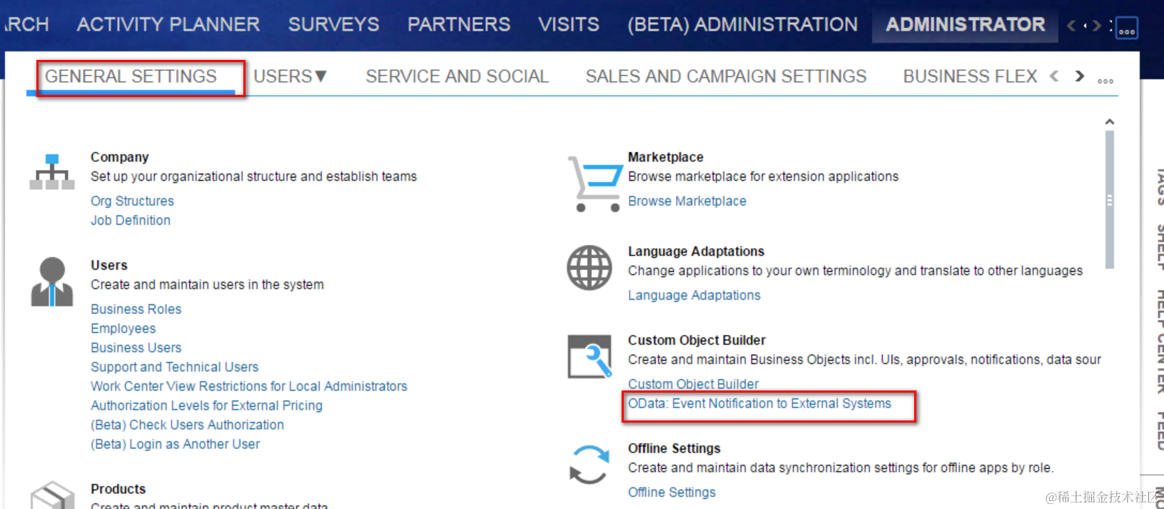 - 登录C4C系统,工作中心Administrator,工作中心视图General Settings: