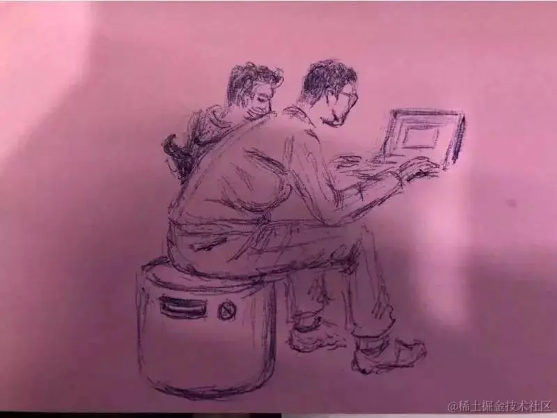 飞机哥张航后来完成了一幅素描,下图左边正在沉思的男子就是大卫哥。