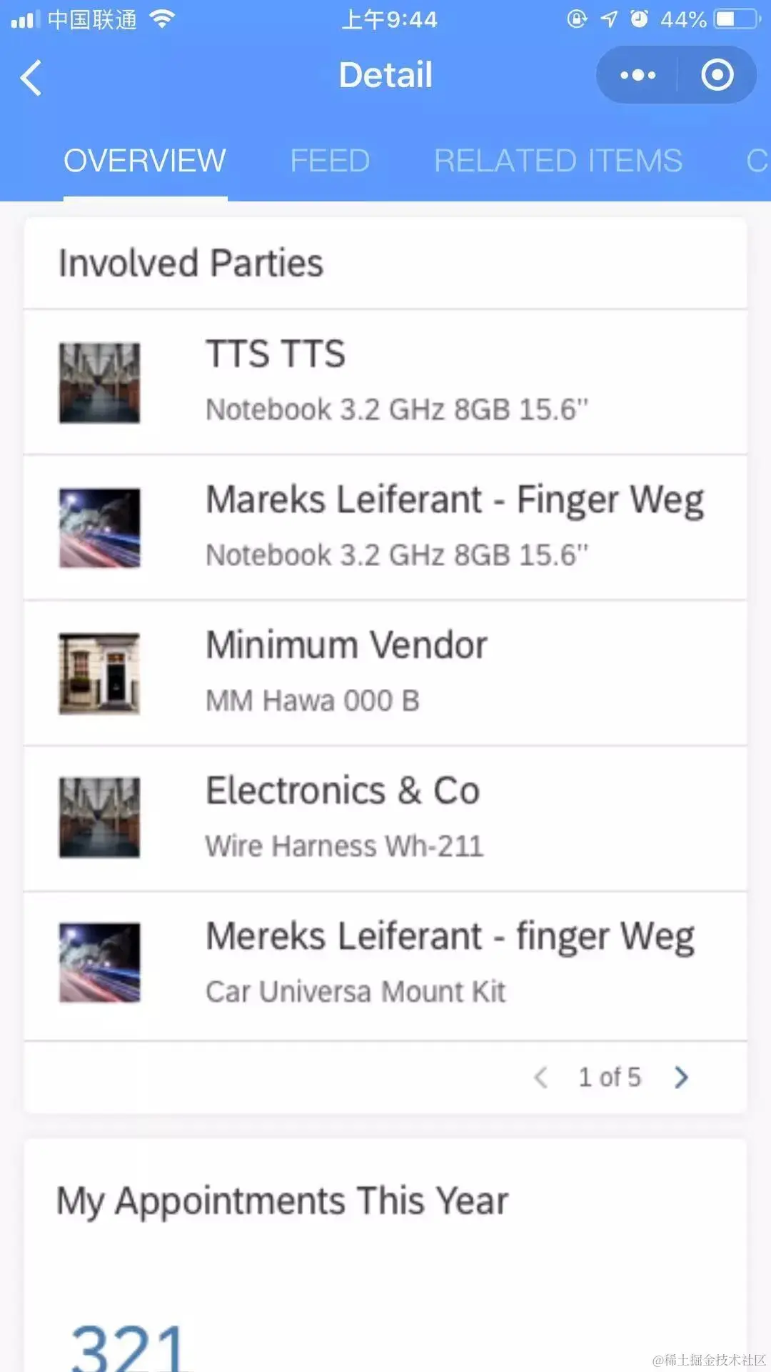 点击列表中任意一条记录,进入明细界面,并且和C4C中一样也是以不同的标签页(我们内部称这些标签页为facet)去呈现数据。